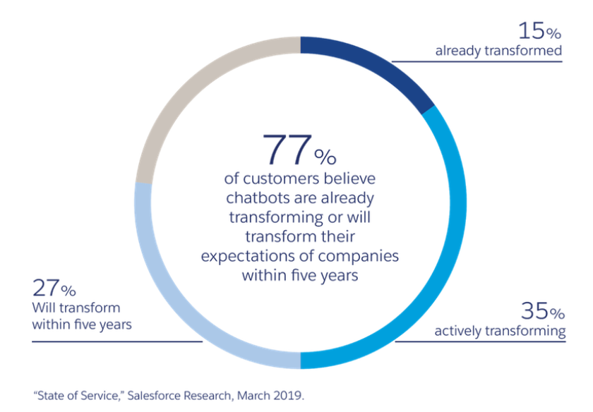 - Overall, 77% of customers claim that Chatbots are transforming their overall shopping in a much more positive way;